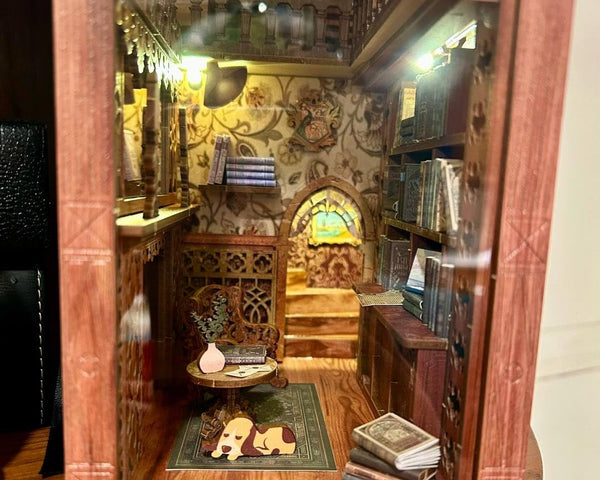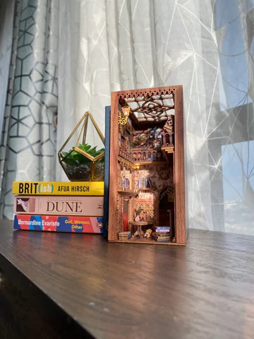 This book nook kit is unique and so charming! I've never seen anything like it. I'm really pleased with the quality of all the materials. They seem well-made and not flimsy. I do think it requires a level of care though so as not to break any parts while assembling. The details are really impressive, and and the little furniture pieces are just darling! The fact that it lights up is also a bonus. This would make a great gift for someone who loves assembling models or crafting!