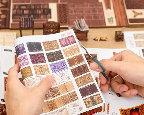 - Tout ce dont vous avez besoin pour construire le booknook est fourni dans notre kit. Il suffit de déballer la boîte et de commencer à créer